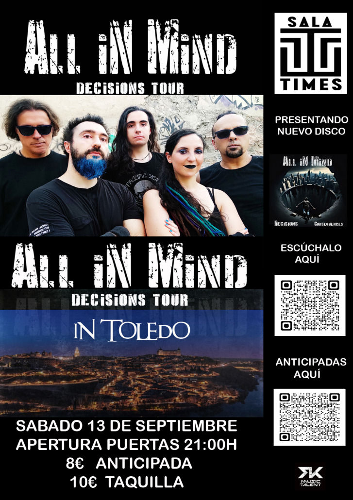 El próximo sábado 13 de Septiembre, estaremos en @times_toledo presentando nuestro nuevo disco «Decisions, consequences», en un show que no te dejará indiferente ![]()